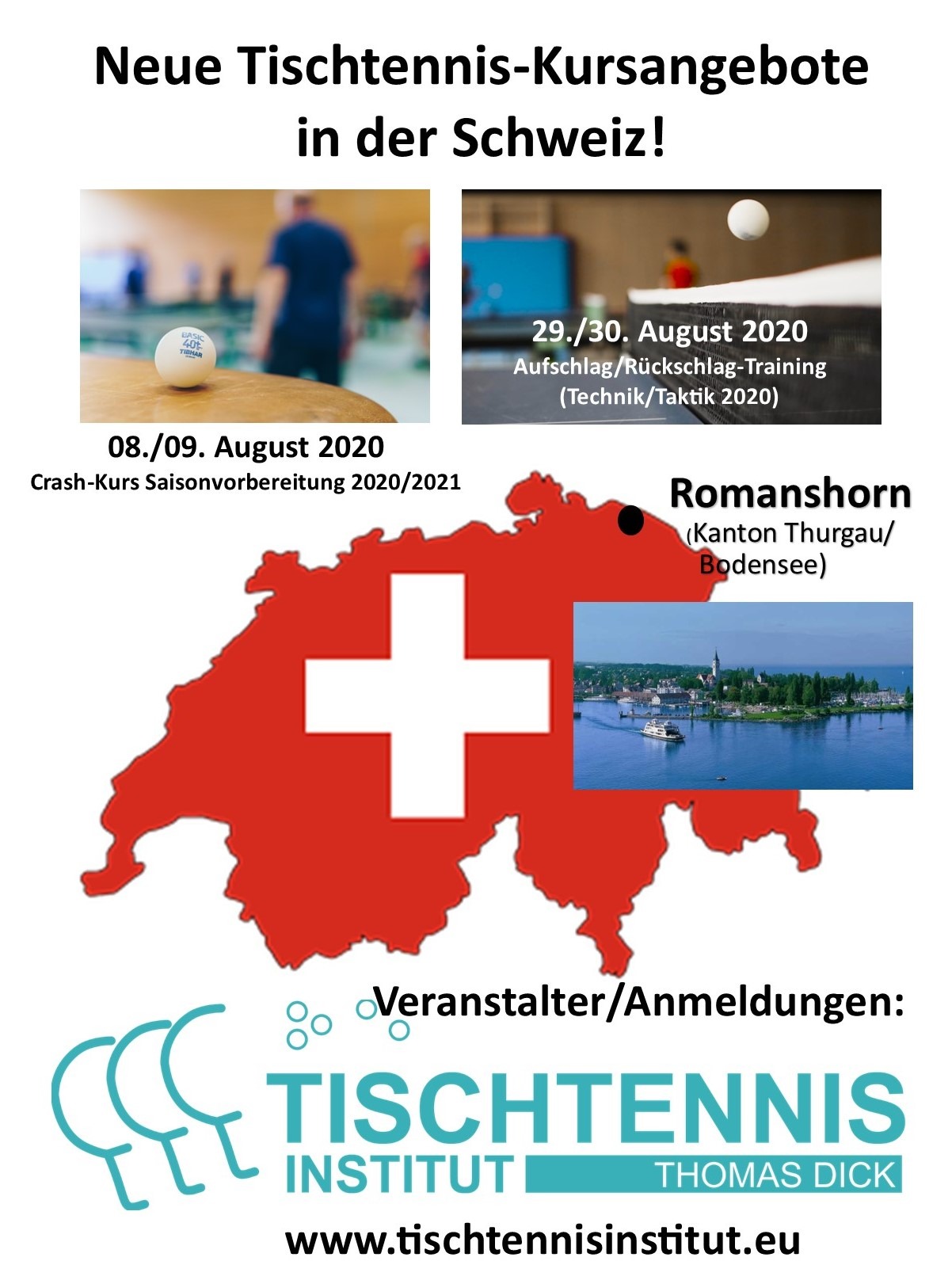 Wir möchten euch auf 2 Tischtenniskurse in Romanshorn aufmerksam machen, die am 8./9. August resp. 29./30. August stattfinden.